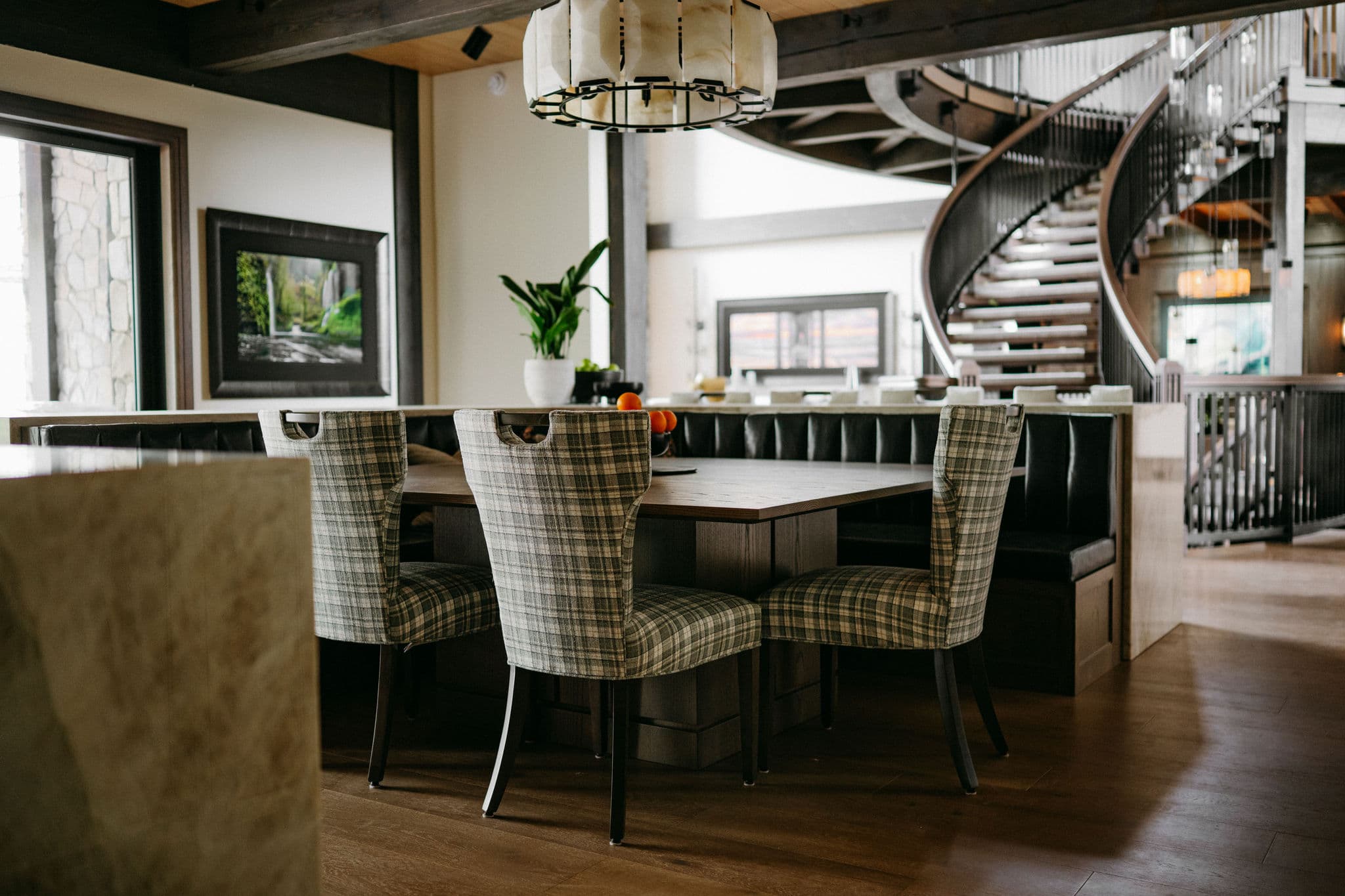 The home’s unique charm owes much to the strong vision led by Rachel Kemp, Principal Designer at Studio Ridge Residential. With an eye for timeless comfort, Rachel brought a distinct “mad for plaid” approach to every room—rugs, dinette chairs, bar stools, throws, and accent pillows carried variations of checks and tartans, unifying the home’s vast spaces with a subtle continuity.