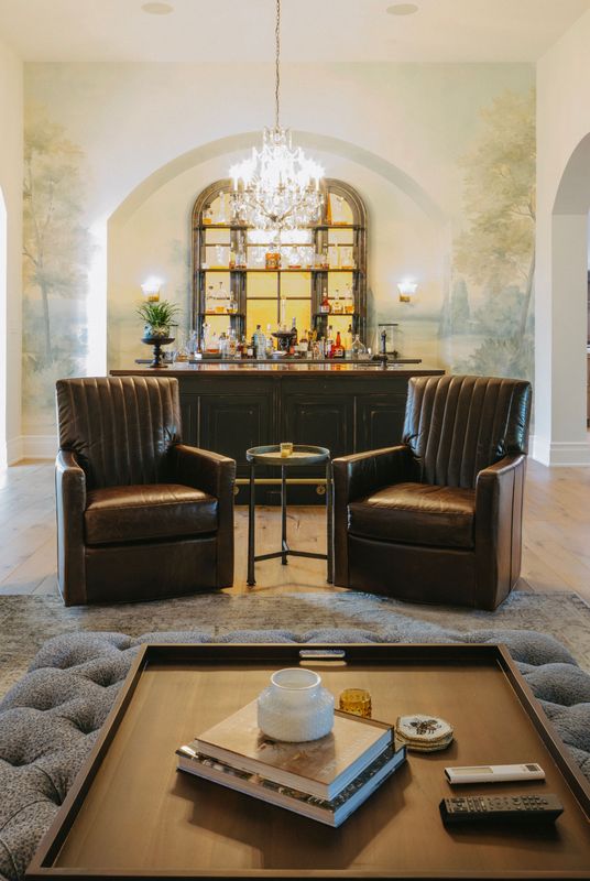 The genesis of the project lay in the homeowners’ deep love of antiques and their passion for French style. Years of travel, collecting, and inspiration boards informed the vision. At one point, a bar they encountered on a trip became the seed of an idea—a central feature of the home designed to re-create the convivial atmosphere they had once experienced abroad.